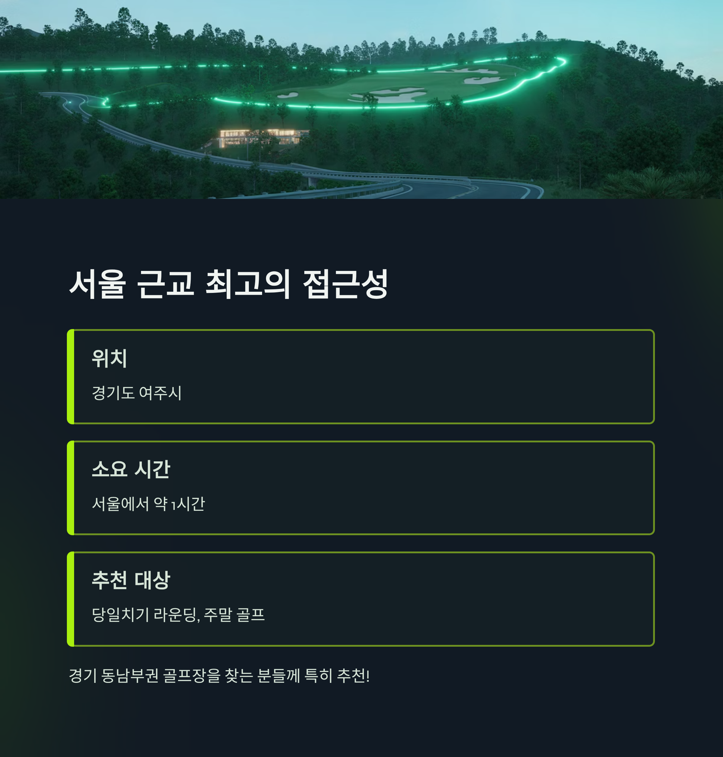 경기 동남부권 골프장을 찾는 분들께 특히 추천할 만한 위치입니다.